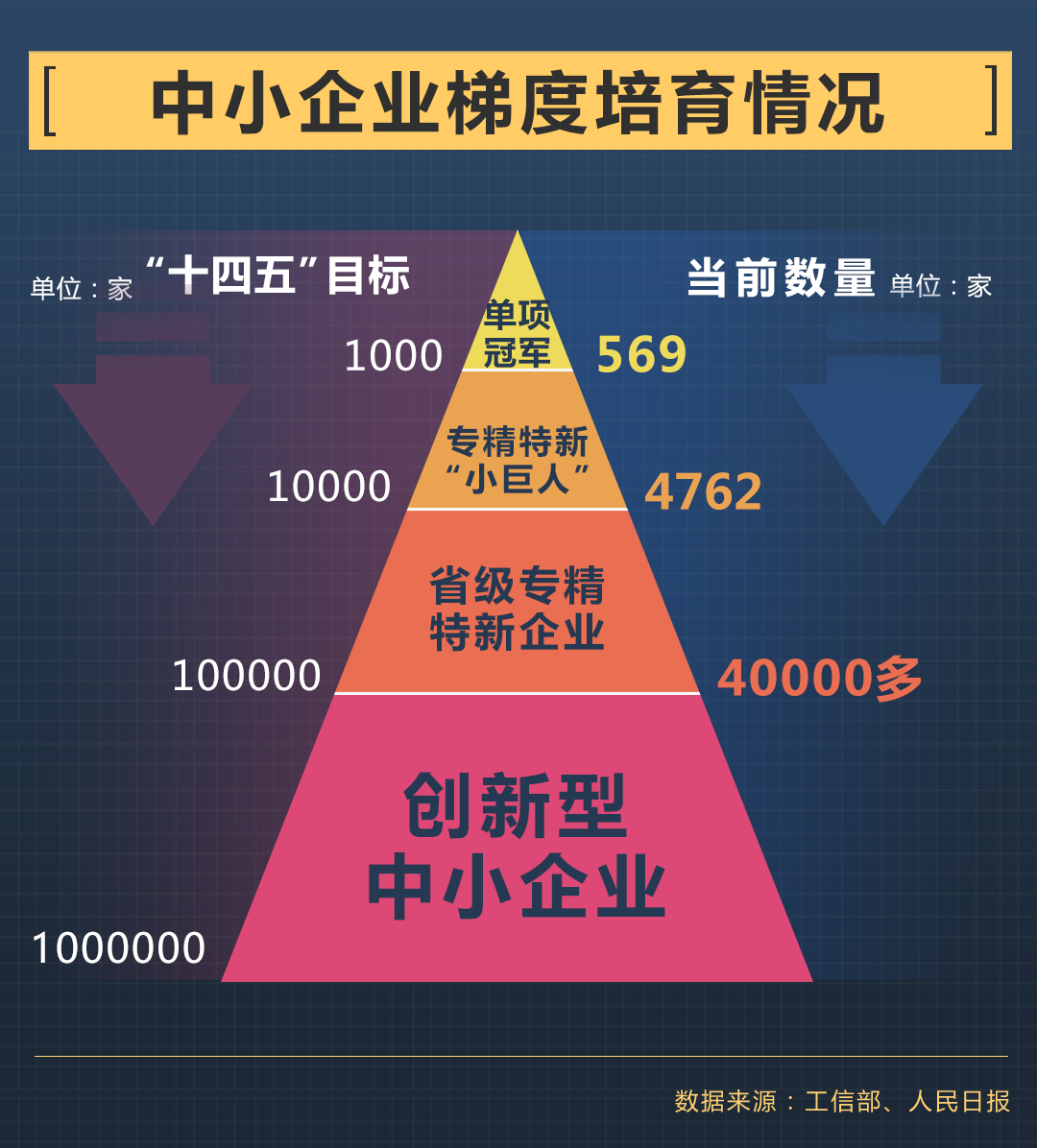 為了強(qiáng)化產(chǎn)業(yè)鏈韌性,工信部正在梯度培育優(yōu)質(zhì)企業(yè)。“十四五”期間,我國(guó)將培育1萬(wàn)家專(zhuān)精特新“小巨人”企業(yè),創(chuàng)新型中小企業(yè)將達(dá)到百萬(wàn)家。“小巨人”是梯度培育體系中,推動(dòng)中小企業(yè)由小到大、由大到強(qiáng)、由強(qiáng)變優(yōu)的關(guān)鍵交匯點(diǎn)。