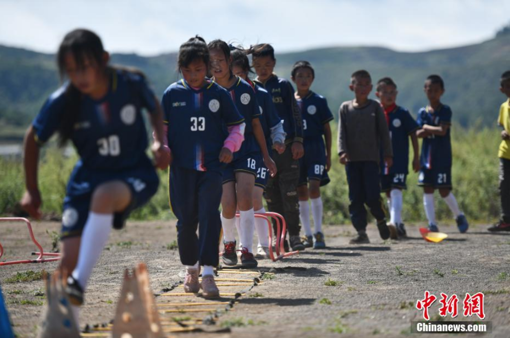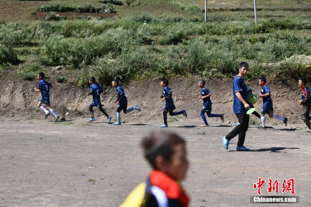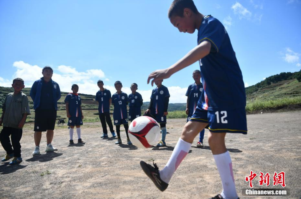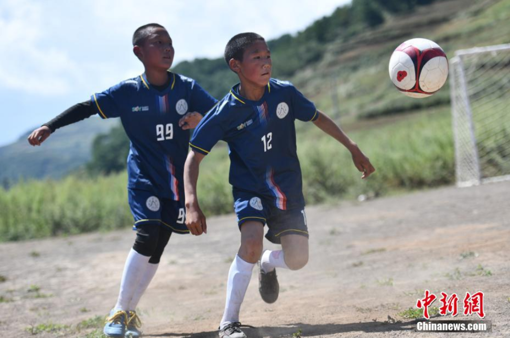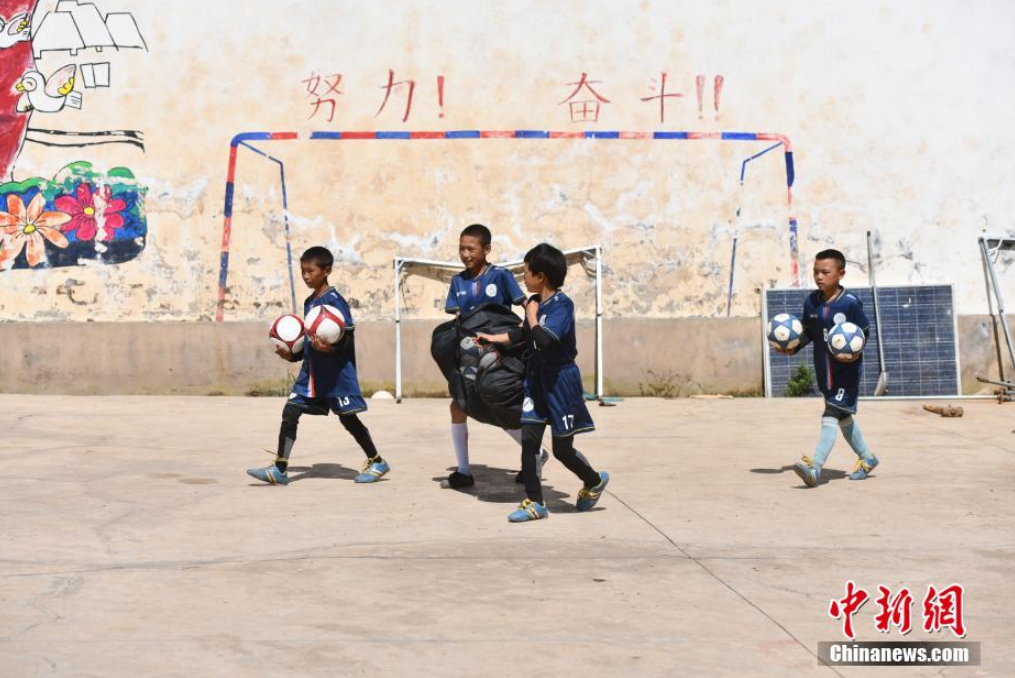 9月2日,四川省涼山彝族自治州昭覺縣瓦吾小學(xué)的彝族孩子們迎來了新學(xué)期開學(xué)后的第一節(jié)足球課。經(jīng)過漫長(zhǎng)的暑假,瓦吾小學(xué)兩位支教老師帶領(lǐng)孩子們通過負(fù)重、體能、比賽等訓(xùn)練,檢驗(yàn)孩子們的足球技能。瓦吾小學(xué)因其特殊的地理位置,被稱為“云端小學(xué)”,目前該學(xué)校255名學(xué)生中踢足球的就超過了80名,足球?yàn)楹⒆觽兗芷鹆艘蛔ㄏ蛏酵馐澜绲臉蛄?。圖為孩子們拿上足球準(zhǔn)備開始訓(xùn)練。張浪 攝