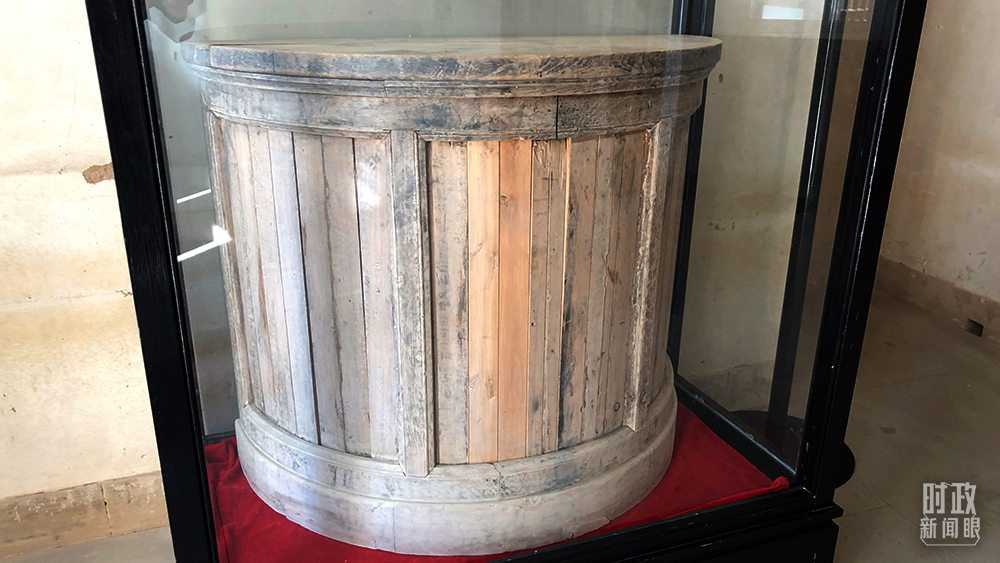 △這是毛澤東轉(zhuǎn)戰(zhàn)陜北期間用過的講桌,現(xiàn)陳列在楊家溝革命舊址毛澤東舊居內(nèi)。(總臺央視記者許永松拍攝)