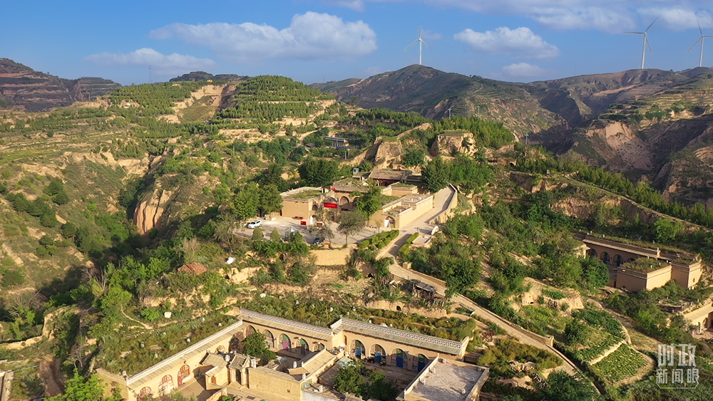 △坐落在黃土高原的楊家溝革命舊址,四周綠樹環(huán)繞。(總臺記者趙振凱拍攝)