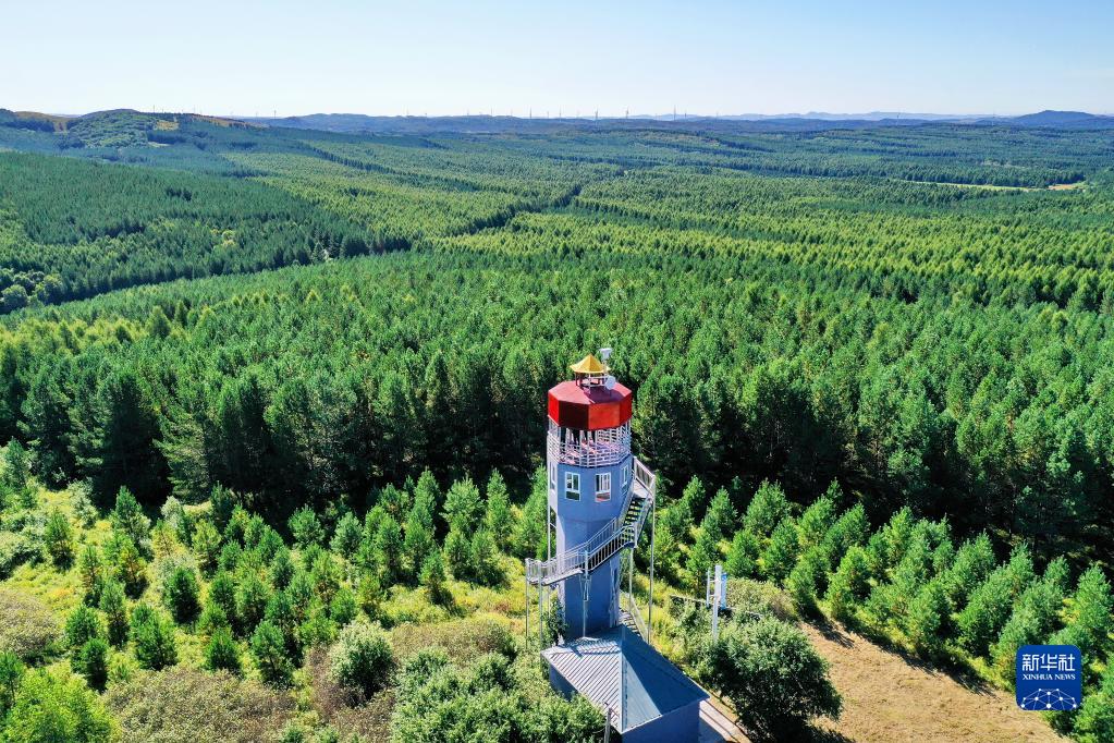 河北塞罕壩機(jī)械林場(chǎng)內(nèi)的望海樓(8月23日攝,無(wú)人機(jī)照片)。新華社記者 牟宇 攝