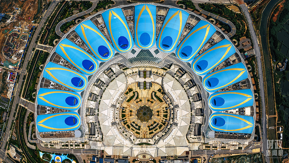 △昆明滇池國(guó)際會(huì)展中心以“孔雀翎羽”為設(shè)計(jì)概念?!渡锒鄻有怨s》第十五次締約方大會(huì)就在這里舉行。(圖/視覺中國(guó))