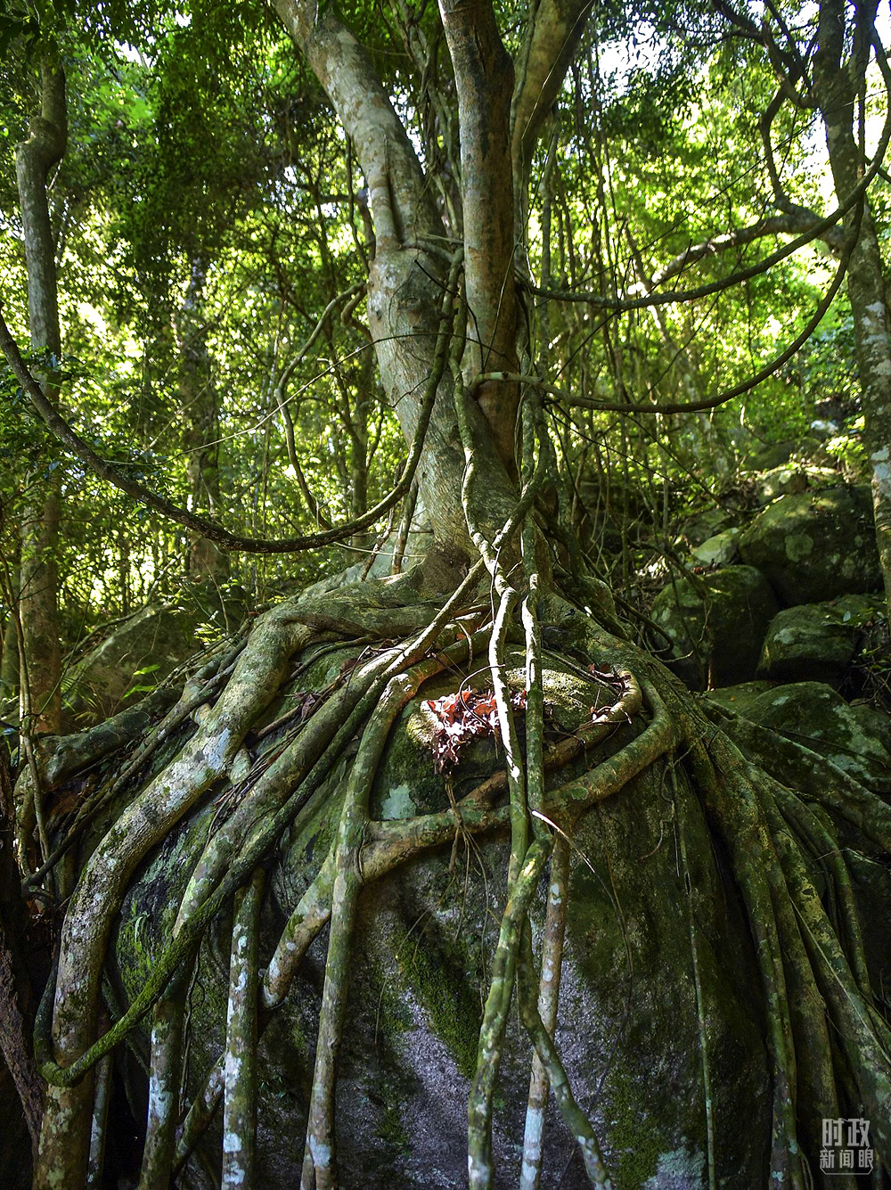 △海南霸王嶺自然保護(hù)區(qū),熱帶雨林中的“根抱石”現(xiàn)象。(圖/視覺中國(guó))
