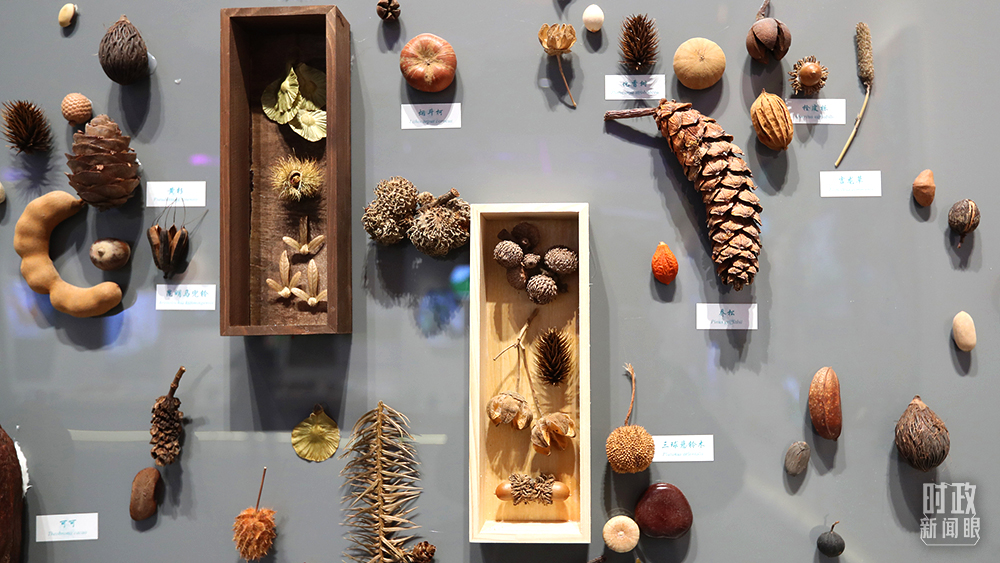 △會(huì)展中心,云南生物多樣性保護(hù)實(shí)踐與成果展展廳的種子墻。(圖/視覺中國(guó))