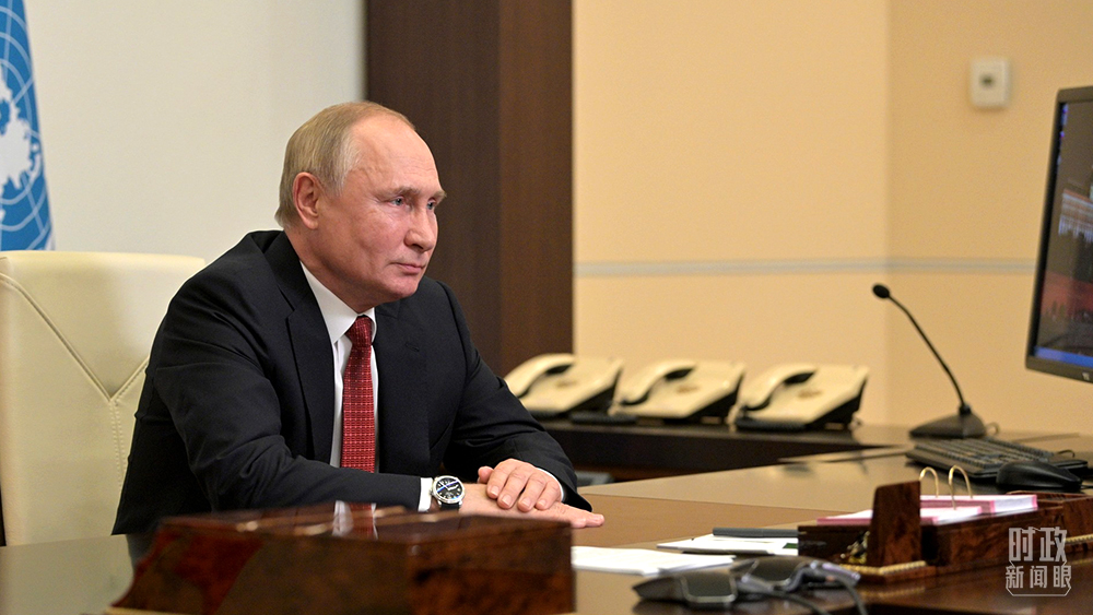 △俄羅斯總統(tǒng)普京、法國(guó)總統(tǒng)馬克龍通過(guò)視頻方式致辭。