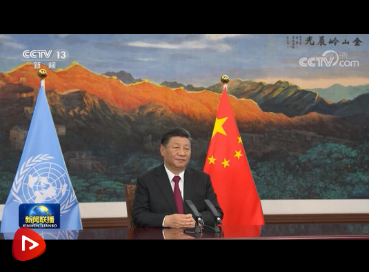 △習(xí)近平主席通過(guò)視頻方式發(fā)表主旨講話。(總臺(tái)央視記者胡瑋拍攝)