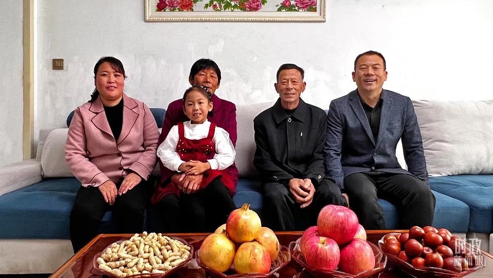 △這是21日當(dāng)天,許福華(右二)老人一家拍攝的全家福。(總臺央視記者邢彬拍攝)