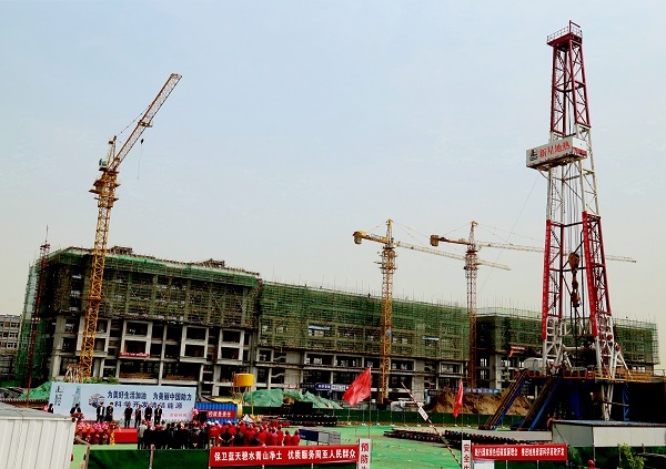 西安市周至縣錦華苑地?zé)峒泄犴?xiàng)目開(kāi)鉆現(xiàn)場(chǎng)