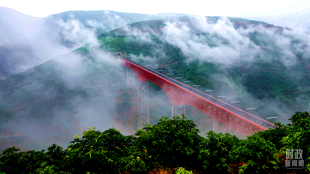 △2021年7月,中老鐵路玉磨段元江雙線特大橋順利實現(xiàn)合龍。(圖/視覺中國)
