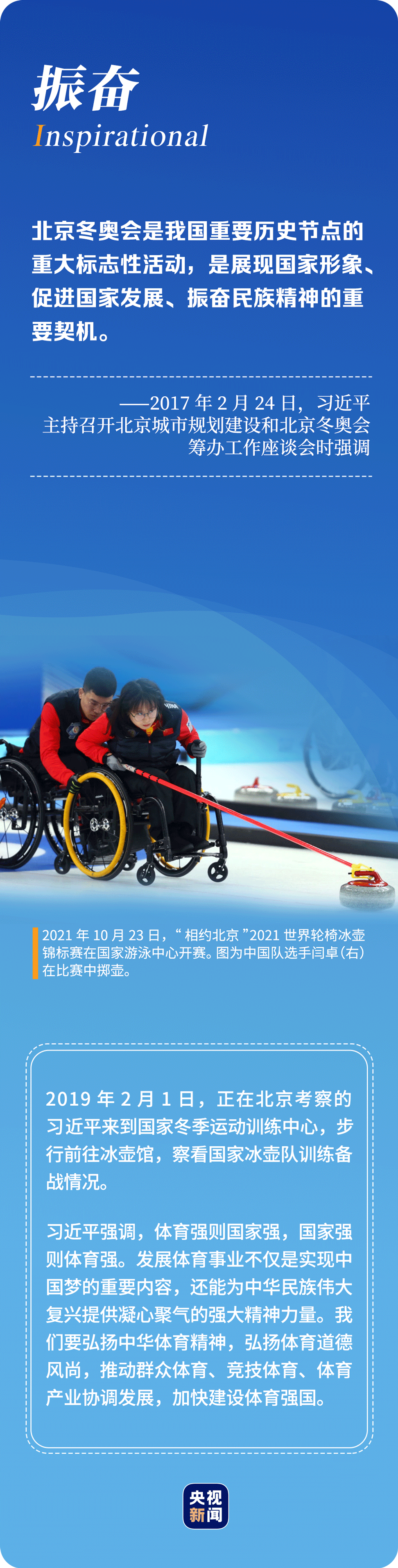 “辦好北京冬奧會(huì)、冬殘奧會(huì)是黨和國(guó)家的一件大事,是我們對(duì)國(guó)際社會(huì)的莊嚴(yán)承諾,做好北京冬奧會(huì)、冬殘奧會(huì)籌辦工作使命光榮、意義重大。”6年多來,習(xí)近平總書記始終惦記著冬奧會(huì)籌辦進(jìn)展,多次實(shí)地考察、主持召開重要會(huì)議部署推進(jìn)冬奧籌辦工作。