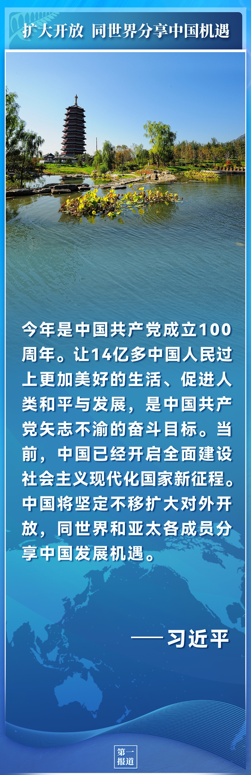 今年是中國共產(chǎn)黨成立100周年。讓14億多中國人民過上更加美好的生活、促進人類和平與發(fā)展,是中國共產(chǎn)黨矢志不渝的奮斗目標。當前,中國已經(jīng)開啟全面建設(shè)社會主義現(xiàn)代化國家新征程。中國將堅定不移擴大對外開放,同世界和亞太各成員分享中國發(fā)展機遇。