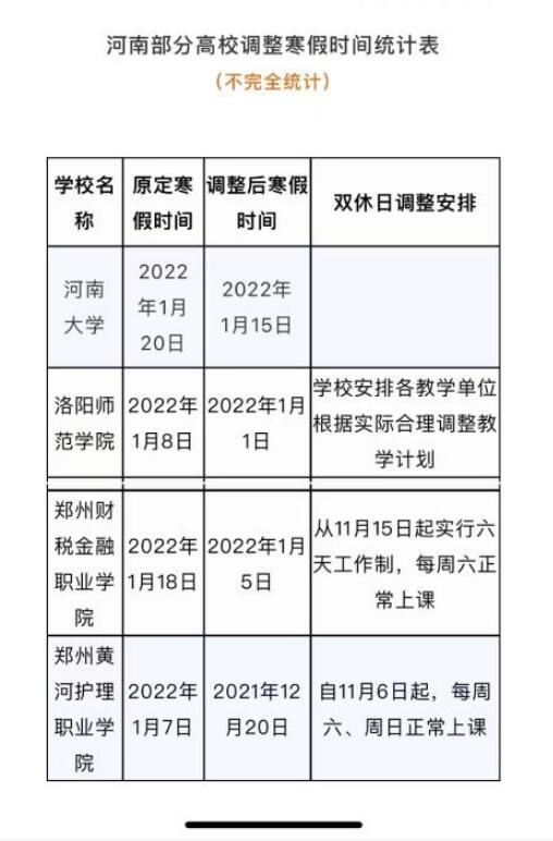 河南部分高校寒假時間調(diào)整。 截圖取自河南省教育廳微信公眾號