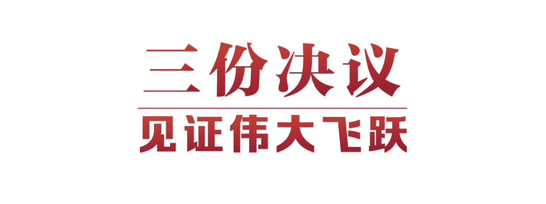 三份決議,見證中國從新民主主義革命時(shí)期、社會(huì)主義革命和建設(shè)時(shí)期、改革開放和社會(huì)主義現(xiàn)代化建設(shè)新時(shí)期,走進(jìn)中國特色社會(huì)主義新時(shí)代。