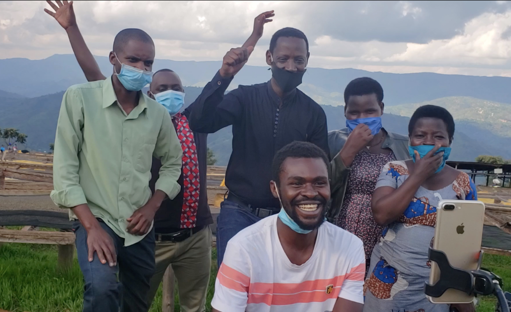 2020年5月14日,盧旺達(dá)咖啡農(nóng)觀看直播錄像,看到3000斤咖啡瞬間賣光后歡呼。