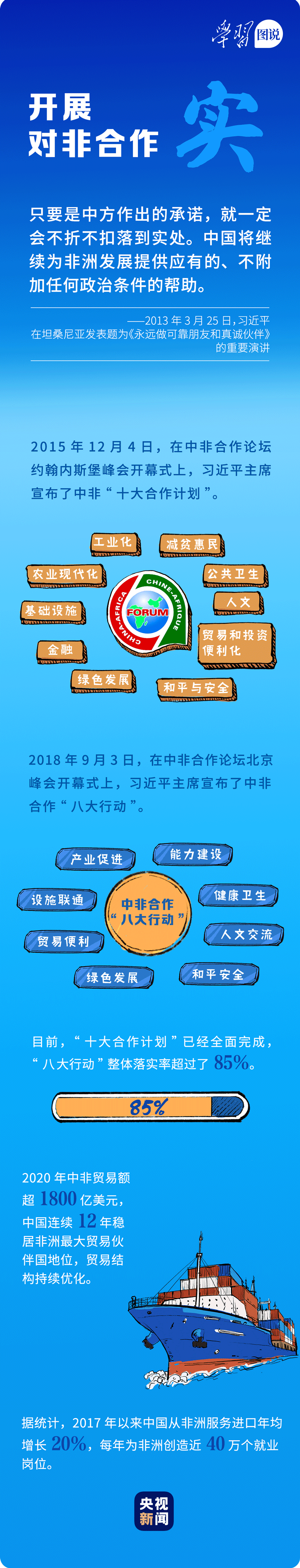 習(xí)近平主席親自擘畫、親力親為,以深邃的思想指引、強(qiáng)大的行動感召和鮮明的榜樣示范,引領(lǐng)中非關(guān)系不斷躍上新高度、邁向新境界。