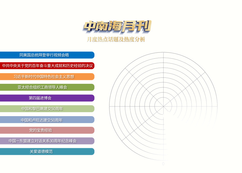 央視網(wǎng)“智聞”系統(tǒng)抓取分析了11月全網(wǎng)時政新聞熱點,十九屆六中全會備受網(wǎng)友關注,與之關聯(lián)的“中共中央關于黨的百年奮斗重大成就和歷史經(jīng)驗的決議”“習近平新時代中國特色社會主義思想”“黨的寶貴經(jīng)驗”等重大話題熱度居高不下。