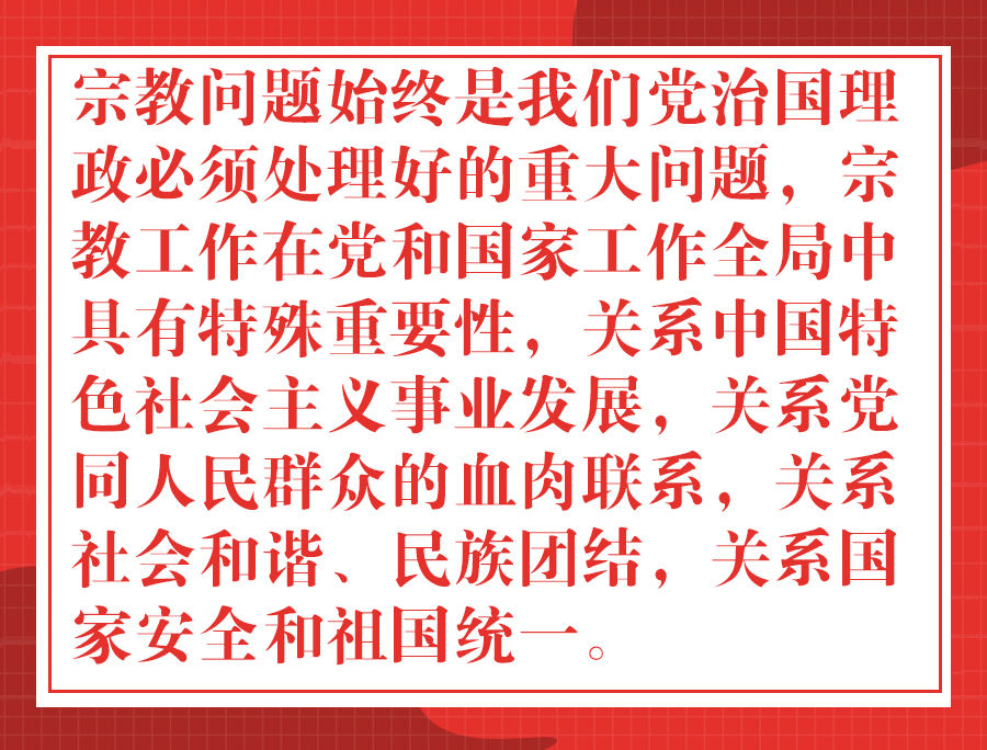 12月3日至4日,全國宗教工作會議在北京召開。中共中央總書記、國家主席、中央軍委主席習(xí)近平出席會議并發(fā)表重要講話。李克強、栗戰(zhàn)書、汪洋、王滬寧、趙樂際、韓正出席會議。
