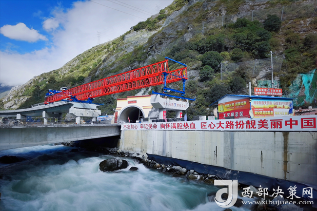 西部決策網(wǎng)訊11月29日,國(guó)道318線(xiàn)康定市過(guò)境段公路工程起點(diǎn)互通立交連接線(xiàn)最后一片T梁平緩地躺在康定河水面。至此,中鐵一局四公司國(guó)道318項(xiàng)目所有預(yù)制梁全部架設(shè)完畢。