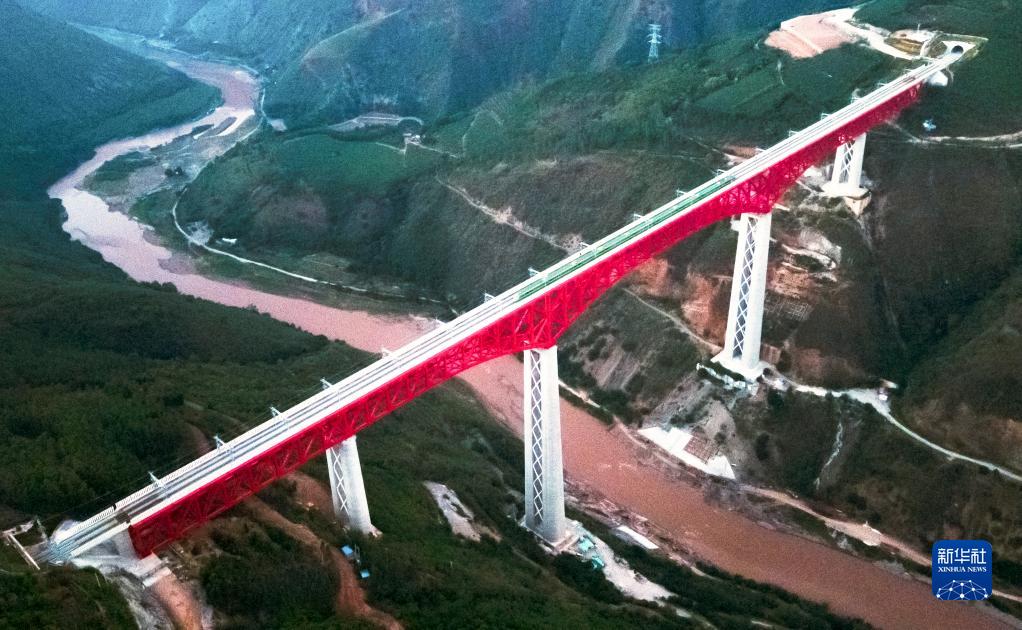 中老鐵路首發(fā)列車駛過中國(guó)云南省元江哈尼族彝族傣族自治縣境內(nèi)的元江雙線特大橋(12月3日攝,無人機(jī)照片)。新華社記者 王冠森 攝