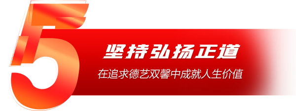 ●要把個(gè)人的道德修養(yǎng)、社會(huì)形象與作品的社會(huì)效果統(tǒng)一起來(lái),堅(jiān)守藝術(shù)理想,追求德藝雙馨,努力以高尚的操守和文質(zhì)兼美的作品,為歷史存正氣、為世人弘美德、為自身留清名。