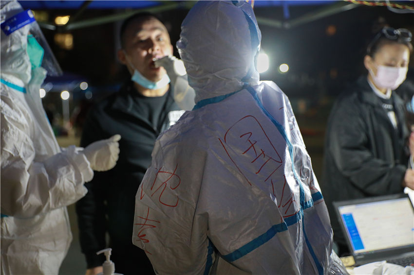西安國際醫(yī)學中心醫(yī)護人員進行核酸采樣工作。