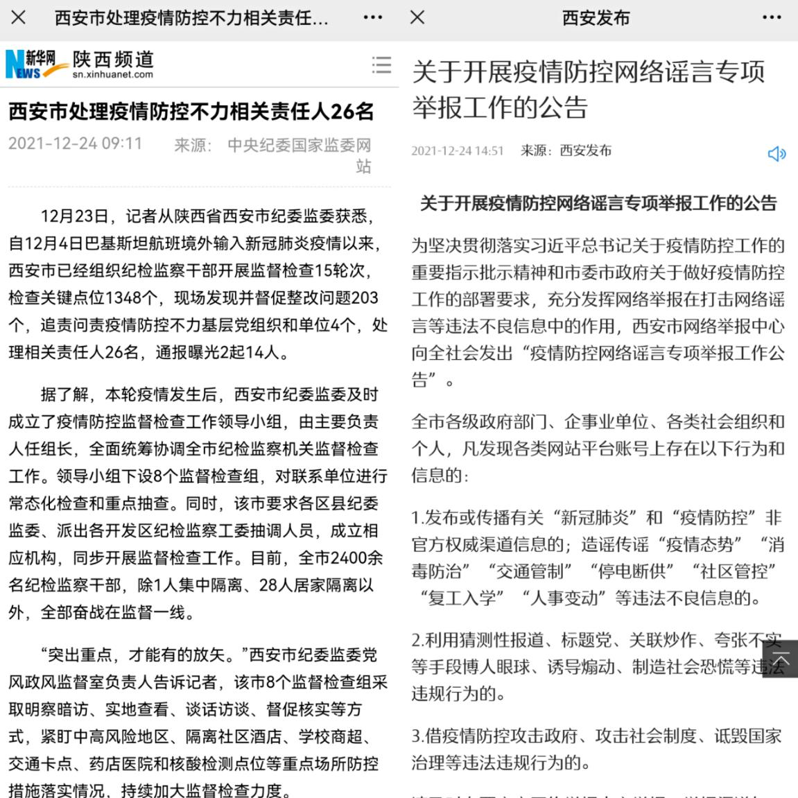 對在疫情防控工作中不擔(dān)當(dāng)、不作為,推諉扯皮、消極應(yīng)付等形式主義官僚主義問題,西安市嚴(yán)肅查處、精準(zhǔn)問責(zé)、及時(shí)曝光,進(jìn)一步嚴(yán)明疫情防控紀(jì)律,壓緊壓實(shí)各方責(zé)任。目前,西安市已經(jīng)組織紀(jì)檢監(jiān)察干部開展監(jiān)督檢查15輪次,檢查關(guān)鍵點(diǎn)位1348個(gè),現(xiàn)場發(fā)現(xiàn)并督促整改問題203個(gè),追責(zé)問責(zé)疫情防控不力基層黨組織和單位4個(gè),處理相關(guān)責(zé)任人26名,通報(bào)曝光2起14人。