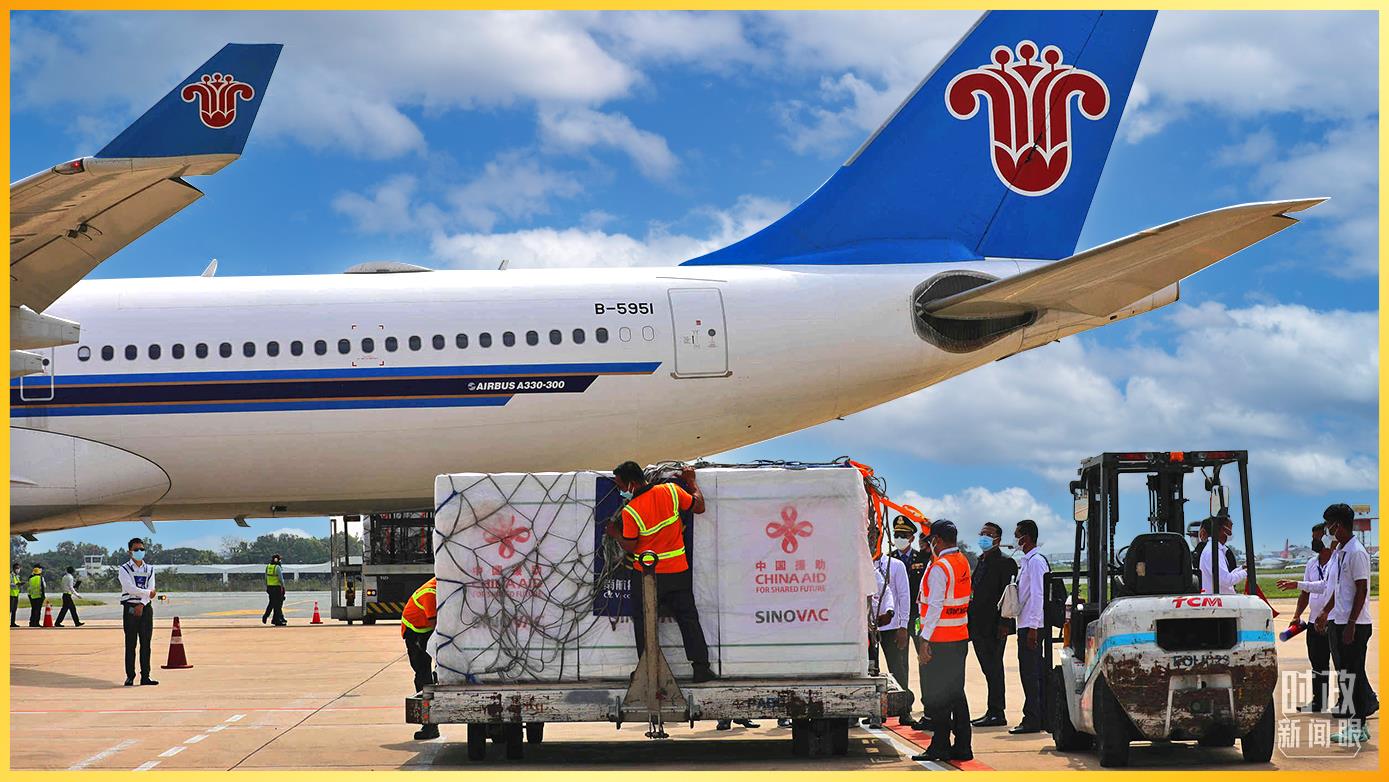 △2021年11月17日,柬埔寨金邊國(guó)際機(jī)場(chǎng),當(dāng)?shù)卣又袊?guó)援柬第七批新冠疫苗。(圖/視覺中國(guó))