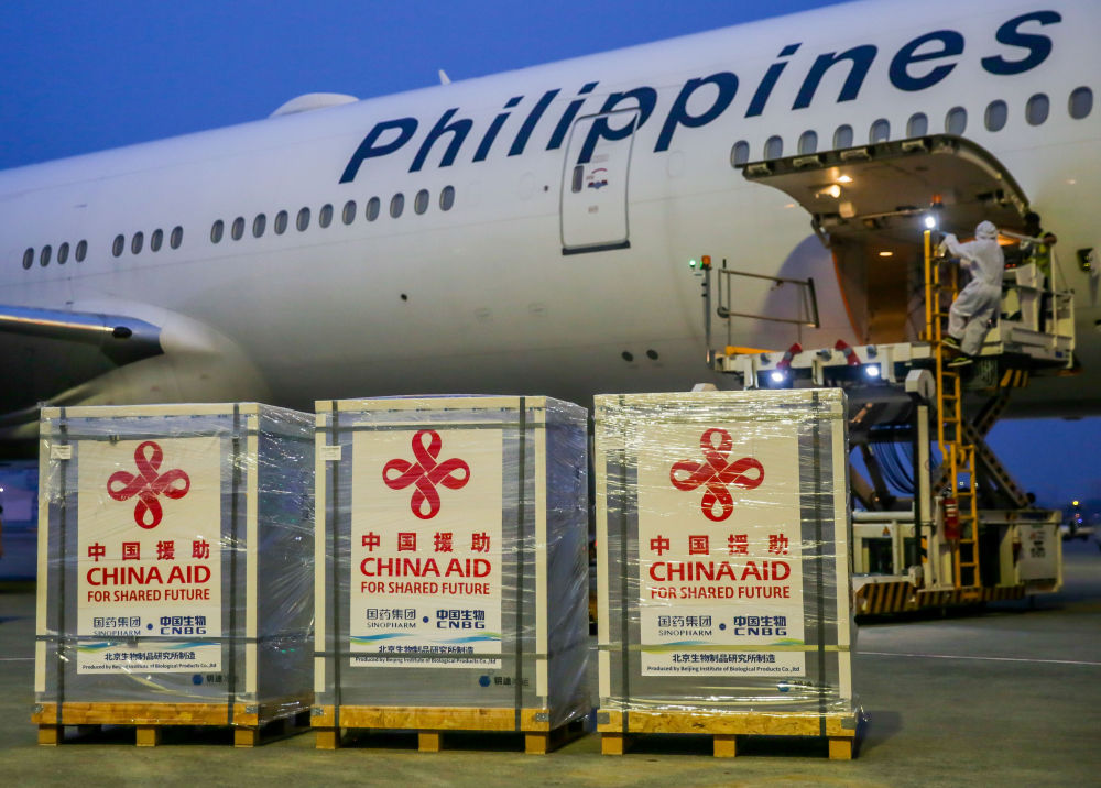 ↑2021年8月20日,中國政府援助的第三批新冠疫苗運抵菲律賓首都馬尼拉。