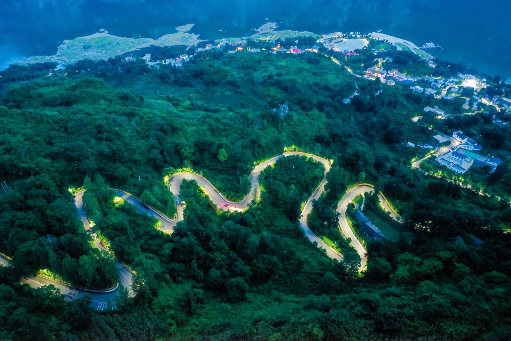 ↑2021年12月30日拍攝的張家口賽區(qū)國家越野滑雪中心的夜景(無人機照片)。