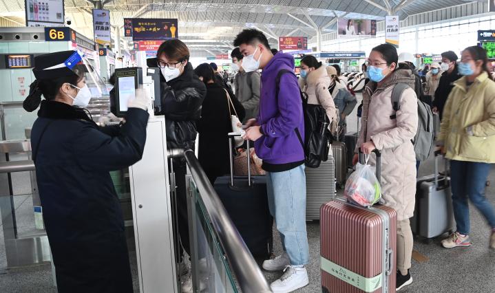 1月16日,西安北客站,離校返鄉(xiāng)的西安高校學(xué)生在排隊(duì)進(jìn)站。新華社記者 陶明 攝