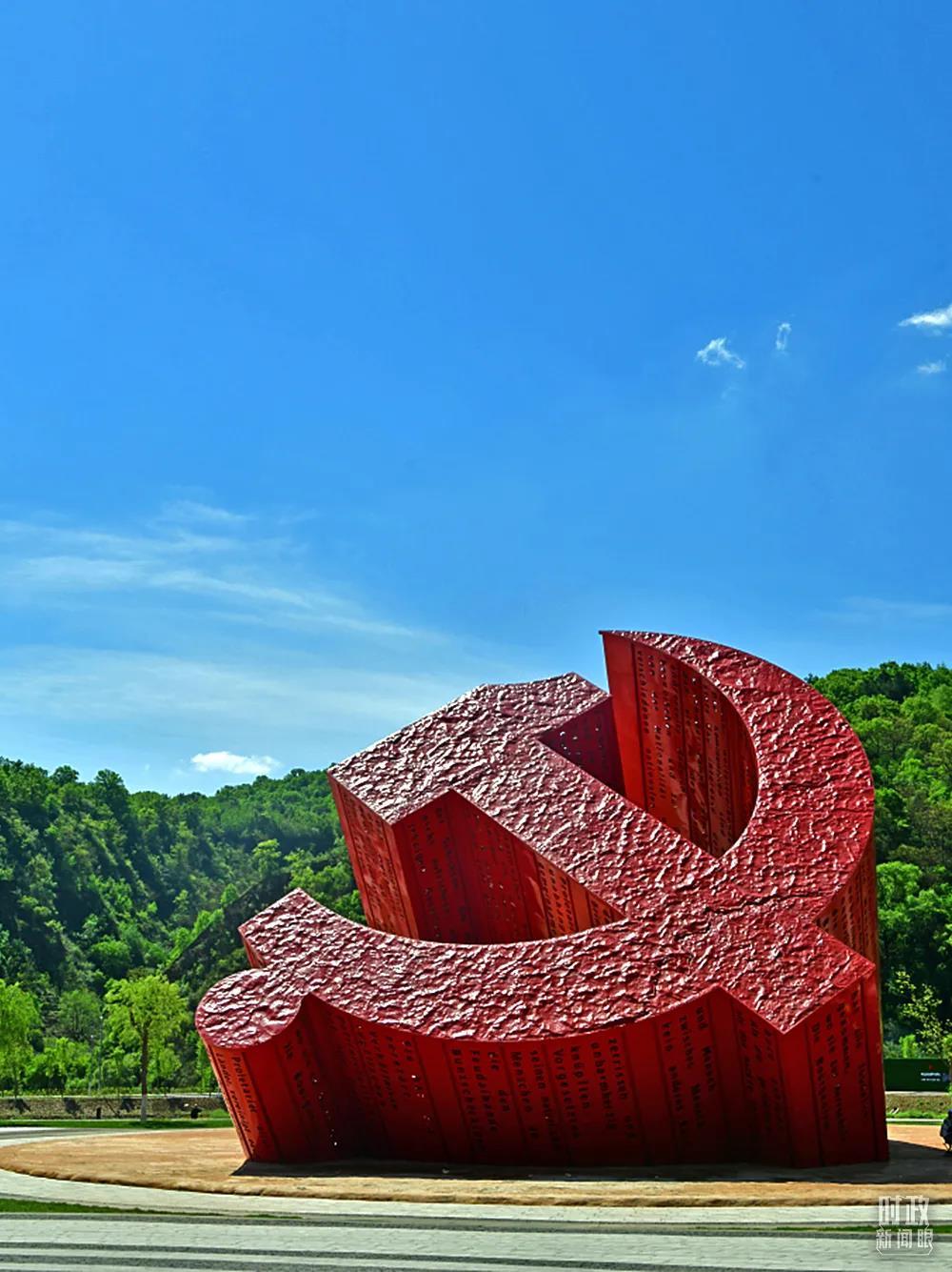 △陜西延安,南泥灣鎮(zhèn)桃寶峪村黨徽廣場。(圖/視覺中國)