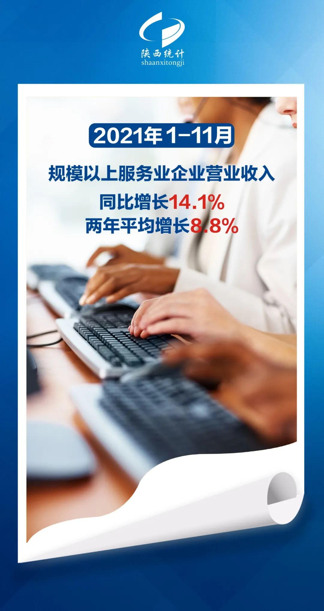 今天(1月19日),陜西省統(tǒng)計(jì)局發(fā)布2021年陜西國(guó)民經(jīng)濟(jì)運(yùn)行情況。根據(jù)地區(qū)生產(chǎn)總值統(tǒng)一核算結(jié)果,2021年,全省實(shí)現(xiàn)地區(qū)生產(chǎn)總值29800.98億元,按不變價(jià)格計(jì)算,比上年增長(zhǎng)6.5%,兩年平均增長(zhǎng)4.3%。其中,第一產(chǎn)業(yè)增加值2409.39億元,增長(zhǎng)6.3%,兩年平均增長(zhǎng)4.8%;第二產(chǎn)業(yè)13802.52億元,增長(zhǎng)5.6%,兩年平均增長(zhǎng)3.4%;第三產(chǎn)業(yè)13589.07億元,增長(zhǎng)7.3%,兩年平均增長(zhǎng)4.9%。