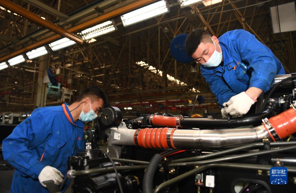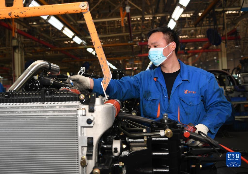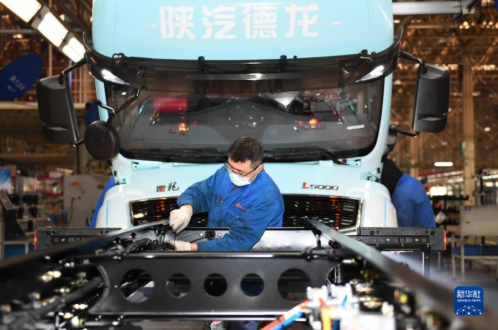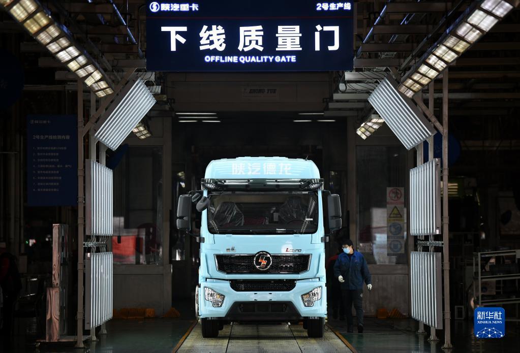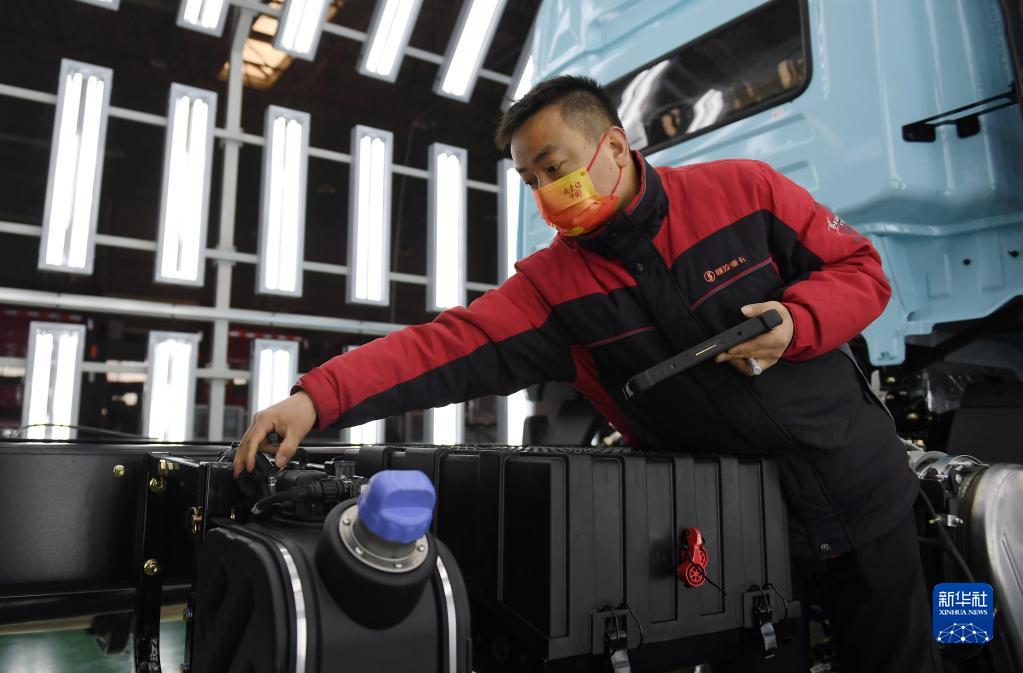 1月20日,工作人員在陜西汽車控股集團(tuán)有限公司總裝車間進(jìn)行重型卡車驗(yàn)收。新華社記者 李一博 攝