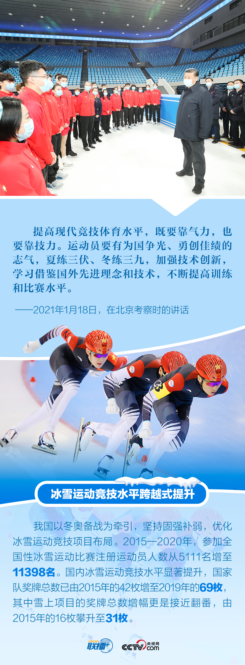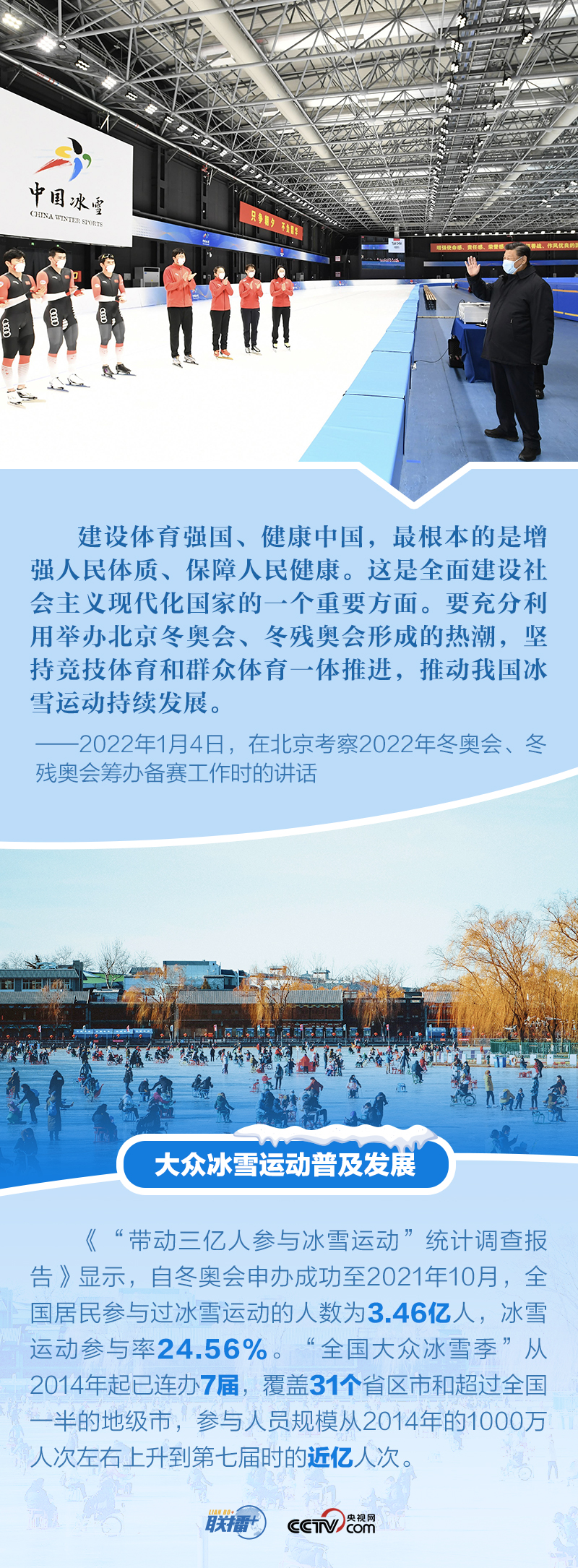 冬奧夢(mèng)交匯中國(guó)夢(mèng),體育強(qiáng)則中國(guó)強(qiáng)。多年來(lái),體育愛(ài)好者習(xí)近平始終關(guān)注我國(guó)冰雪運(yùn)動(dòng)發(fā)展,在不同場(chǎng)合強(qiáng)調(diào)對(duì)冬季奧林匹克運(yùn)動(dòng)的支持,宣示辦好北京冬奧會(huì)、冬殘奧會(huì)的決心。距離北京冬奧會(huì)開(kāi)幕僅十余天,央視網(wǎng)《聯(lián)播+》特梳理總書(shū)記關(guān)于北京冬奧會(huì)、冬殘奧會(huì)籌辦備賽工作的重要活動(dòng)及講話等,與您一起學(xué)習(xí)。