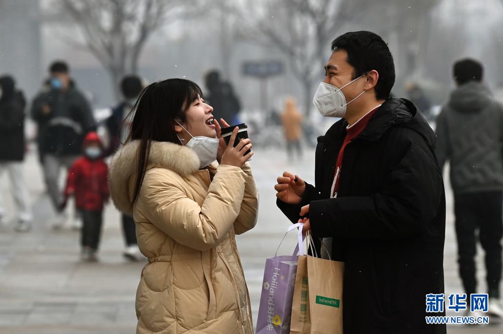 1月23日,市民在西安市未央?yún)^(qū)一廣場(chǎng)上暢談言歡。