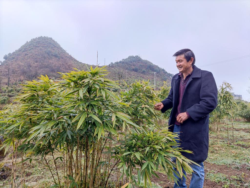 1月6日,鎮(zhèn)雄縣赤水源鎮(zhèn)銀廠村村民吳常開介紹自家種的方竹。 新華社記者 林碧鋒 攝