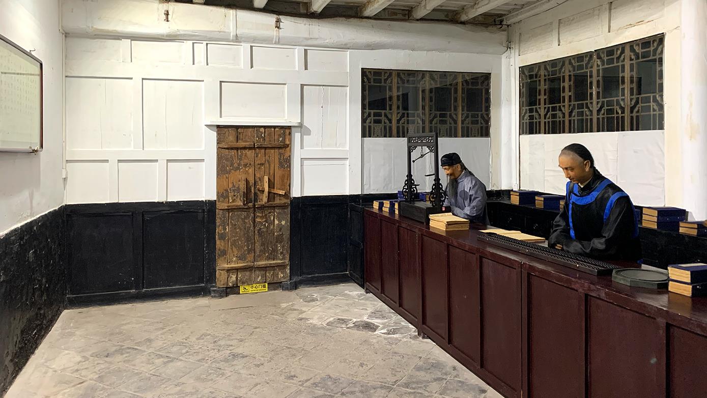 △日昇昌記內(nèi),還原了票號當(dāng)年對外營業(yè)的柜房環(huán)境。(總臺央視記者 段德文拍攝)