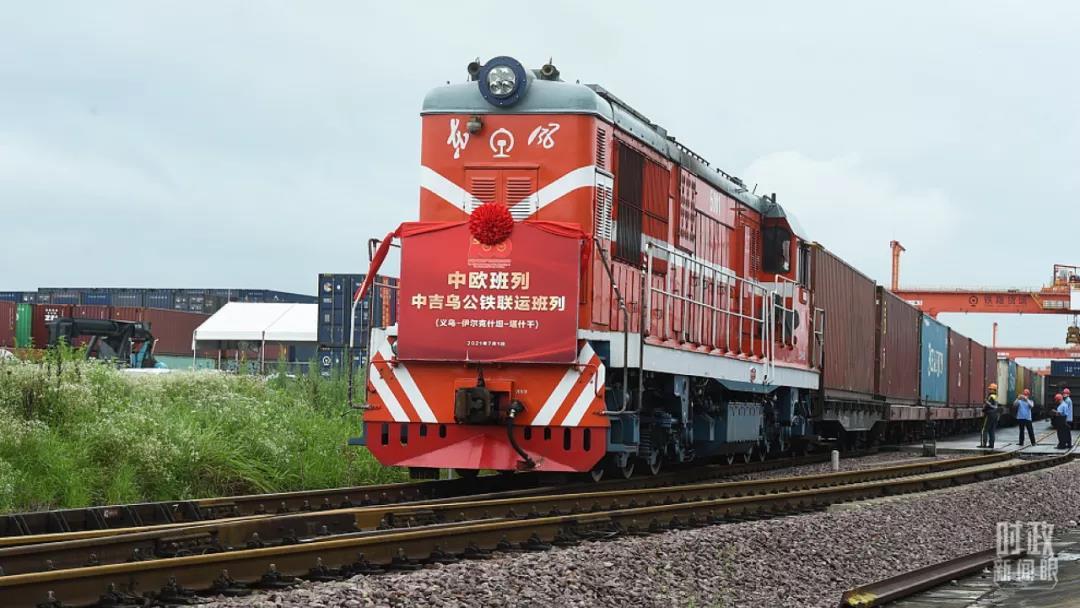 △2021年7月,長三角首趟“中吉烏”公鐵聯(lián)運(yùn)中歐班列從浙江義烏啟程,奔赴吉爾吉斯斯坦、烏茲別克斯坦。(圖/視覺中國)