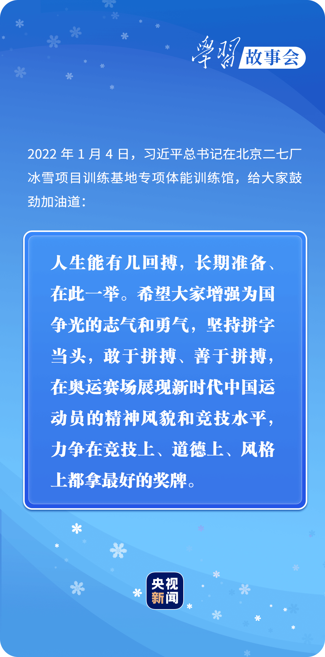 經(jīng)受磨礪、積累經(jīng)驗(yàn),中國(guó)冰雪健兒的勵(lì)志故事,在更多的青少年心中種下冰雪運(yùn)動(dòng)的種子。