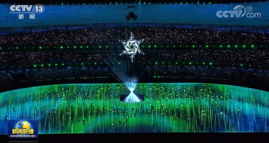 盛會(huì)即將結(jié)束,又到了分別的時(shí)刻。中國古人常折柳送別,寄托思念之情。365名各行各業(yè)、不同年齡的普通人手捧柳枝,匯聚在場地中央,代表一年365天的思念。白色的光束從場地中央亮起,形成一座光的豐碑,承托起主火炬“大雪花”。大屏幕播放短片《2022,有我們!》,記錄下冬奧會(huì)一個(gè)個(gè)溫暖人心的場景。