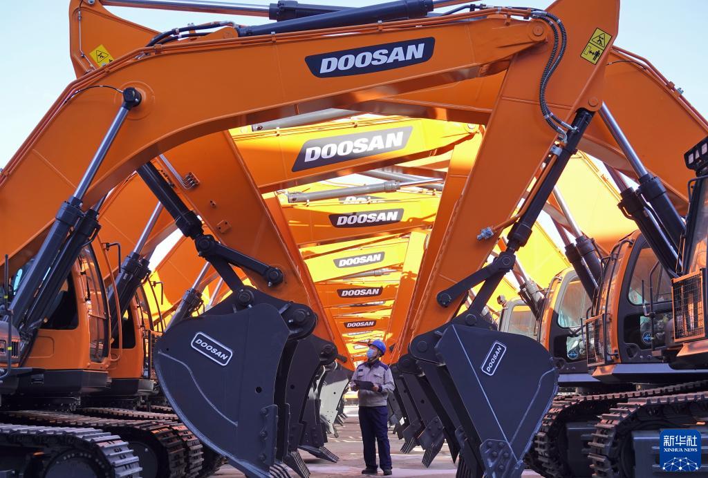 1月17日,在山東煙臺開發(fā)區(qū)一家工程機械有限公司,工作人員對出廠車輛進(jìn)行檢查。新華社發(fā)(唐克 攝)