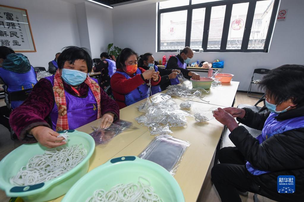 在浙江湖州市織里鎮(zhèn)港西村殘疾人之家,來自周邊的殘疾人正在打包配件(2022年2月22日攝)。完成工作后,他們可以獲得相應(yīng)報酬和補貼。新華社記者 徐昱 攝