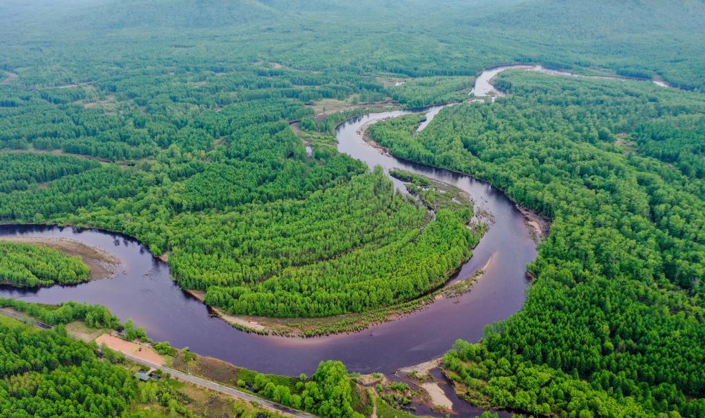 這是內(nèi)蒙古呼倫貝爾根河源國家濕地公園景色(無人機照片,2021年6月8日攝)。新華社記者 連振 攝