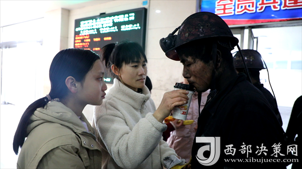 “來(lái)啦,都過(guò)來(lái)了!”“你爸在這呢”不知道哪位礦嫂喊了一聲,大家都向前擠了擠,分別在人群中找尋自己熟悉的親人,她們激動(dòng)的湊上前去,用手中的濕巾和毛巾替礦工們卸妝濃濃的“工作妝”,把手中的面包、奶茶、香蕉、蘋果送到“黑”爸爸口中。看著一張張黑乎乎的臉龐,幾乎不能辨認(rèn)的五官,家屬們有的哽咽著,有的眼淚不聽(tīng)話的流下來(lái),他們把親人的那份辛苦、那份不易看在眼里,疼在心里。