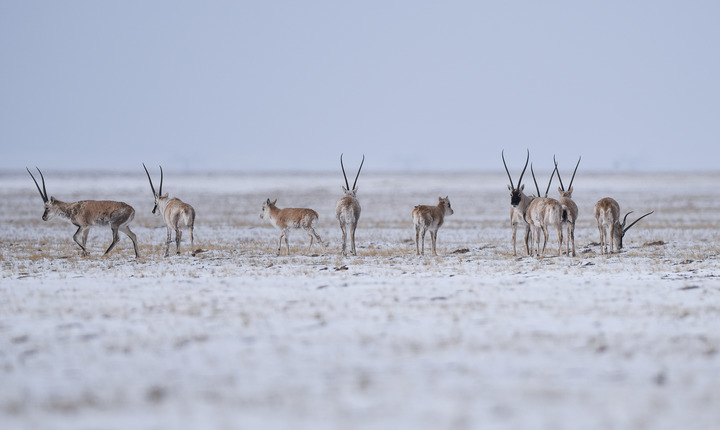 2021年4月20日,藏羚羊在三江源可可西里地區(qū)活動(dòng)。新華社記者 吳剛 攝