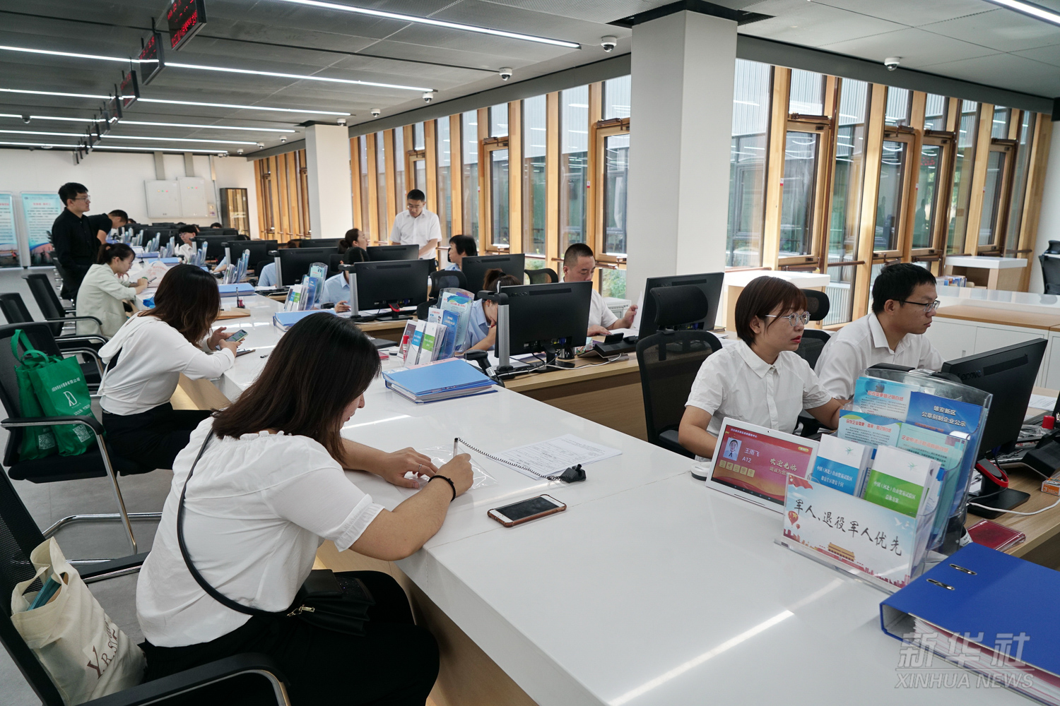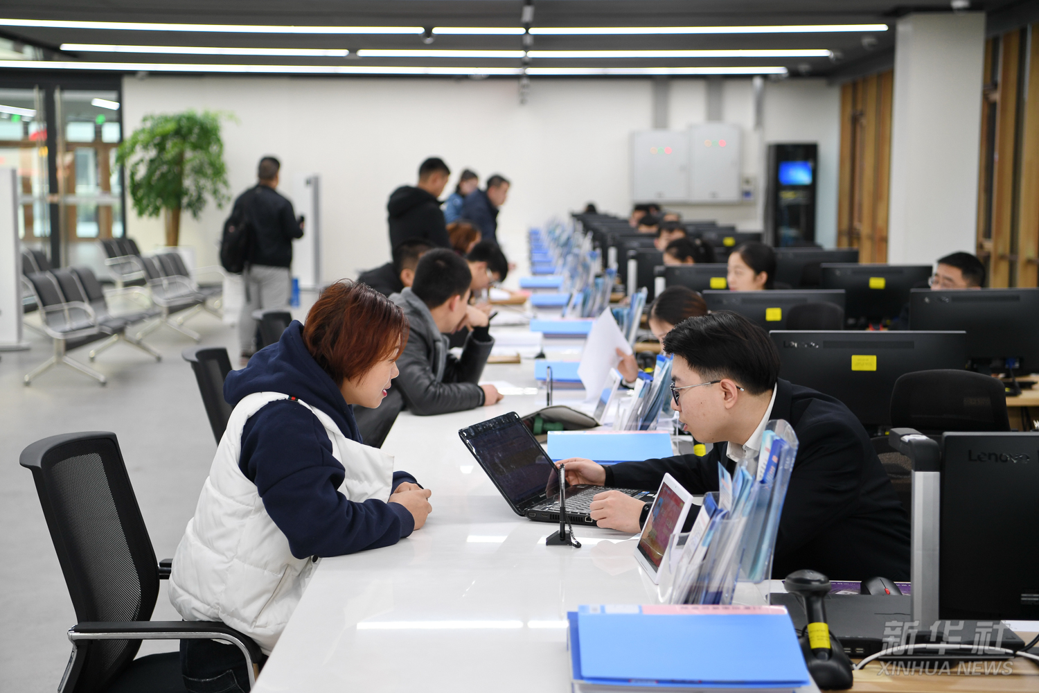 群眾在雄安市民服務中心內(nèi)辦理業(yè)務(2019年1月17日攝)。2021年,雄安新區(qū)提出“一窗受理、一網(wǎng)通辦、一次辦結、一枚印章管到底”的“四個一”審批模式,推動技術、人才、資金等要素資源集聚。