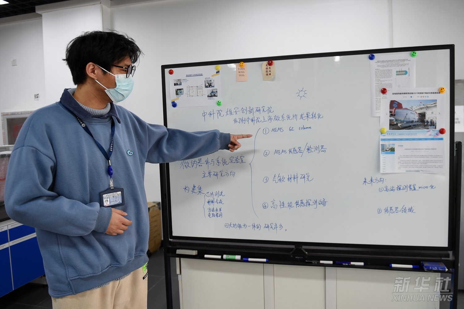 中科院雄安創(chuàng)新研究院工作人員介紹微納器件與系統(tǒng)實驗室主要研究方向(2022年3月8日攝)。2019年12月,中國科學院與河北省政府簽署協(xié)議,合作共建“雄安創(chuàng)新研究院”,重點突破產(chǎn)業(yè)基礎性關鍵技術、新興產(chǎn)業(yè)核心技術和開辟新領域的變革性技術,推動研究成果轉移轉化。