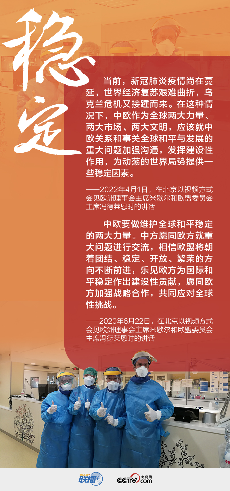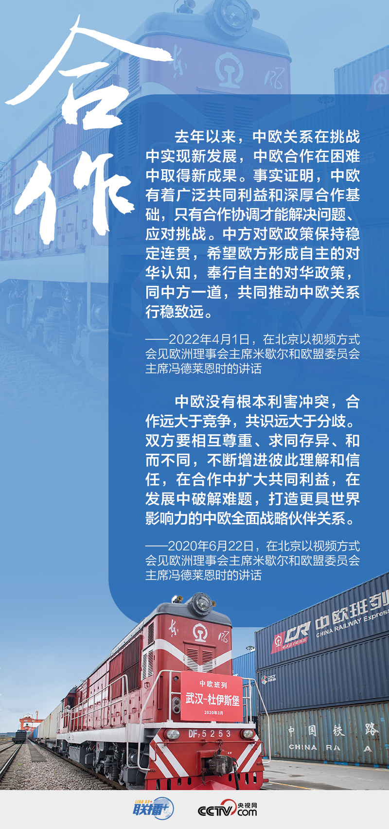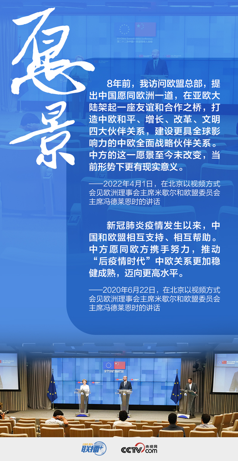 當(dāng)前國際局勢動蕩多變,不確定性明顯上升,中國和歐盟是維護(hù)世界和平的兩大力量、促進(jìn)共同發(fā)展的兩大市場、推動人類進(jìn)步的兩大文明。在時隔近兩年的此次中歐高峰會晤中,傳達(dá)了哪些重要信息?央視網(wǎng)《聯(lián)播+》與您一起學(xué)習(xí)。