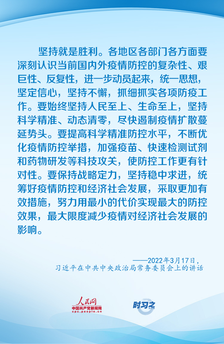 “要始終堅持人民至上、生命至上,堅持科學(xué)精準、動態(tài)清零,盡快遏制疫情擴散蔓延勢頭”。面對新冠肺炎疫情的跌宕反復(fù),習(xí)近平總書記親自指揮、親自部署,以科學(xué)之策應(yīng)對非常之難。今年以來,如何打好疫情防控和經(jīng)濟社會發(fā)展之戰(zhàn),習(xí)近平作出重要部署。