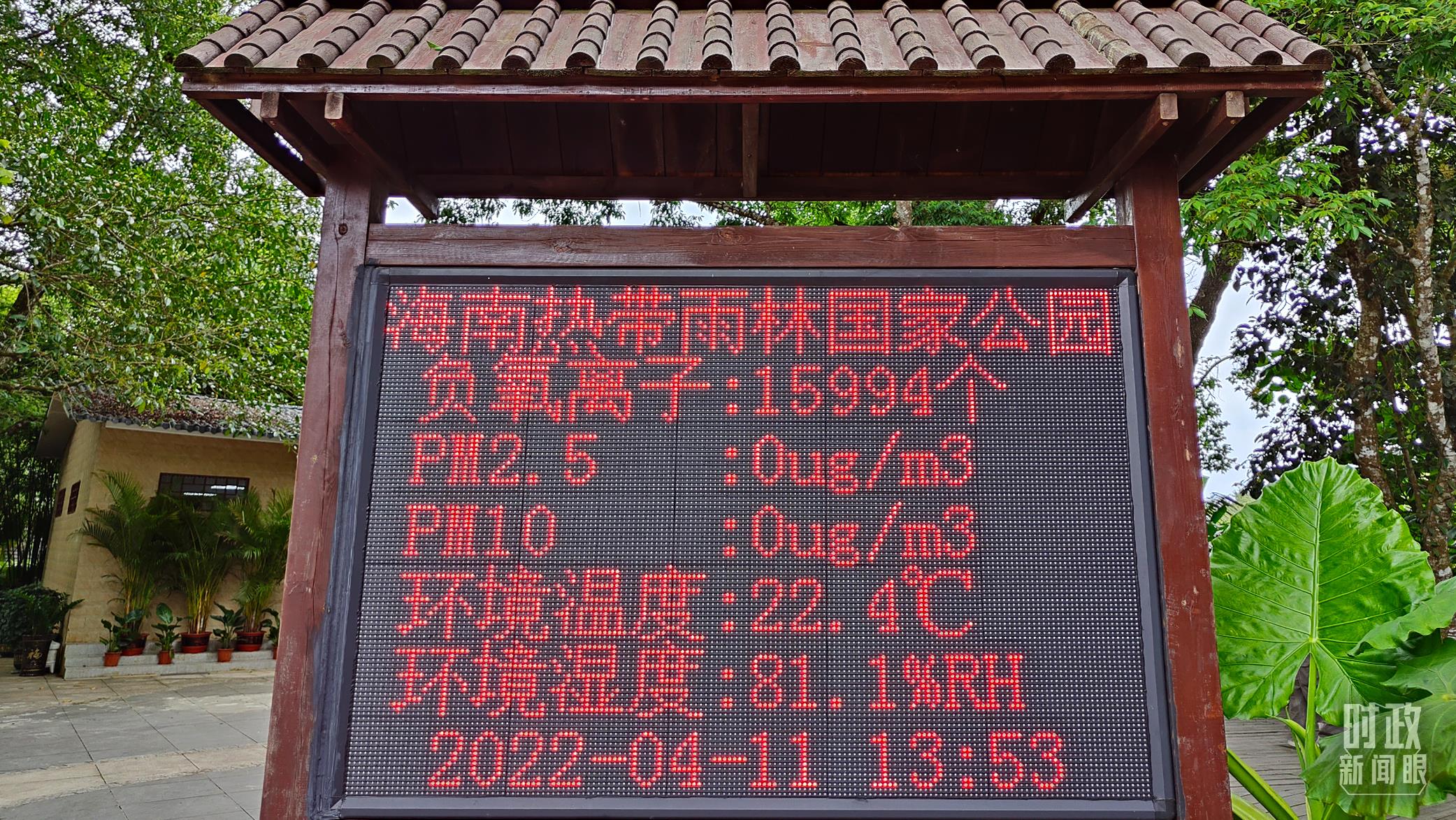 △海南熱帶雨林國家公園的電子屏顯示實時環(huán)境質(zhì)量指數(shù)。(總臺央視記者楊立峰拍攝)